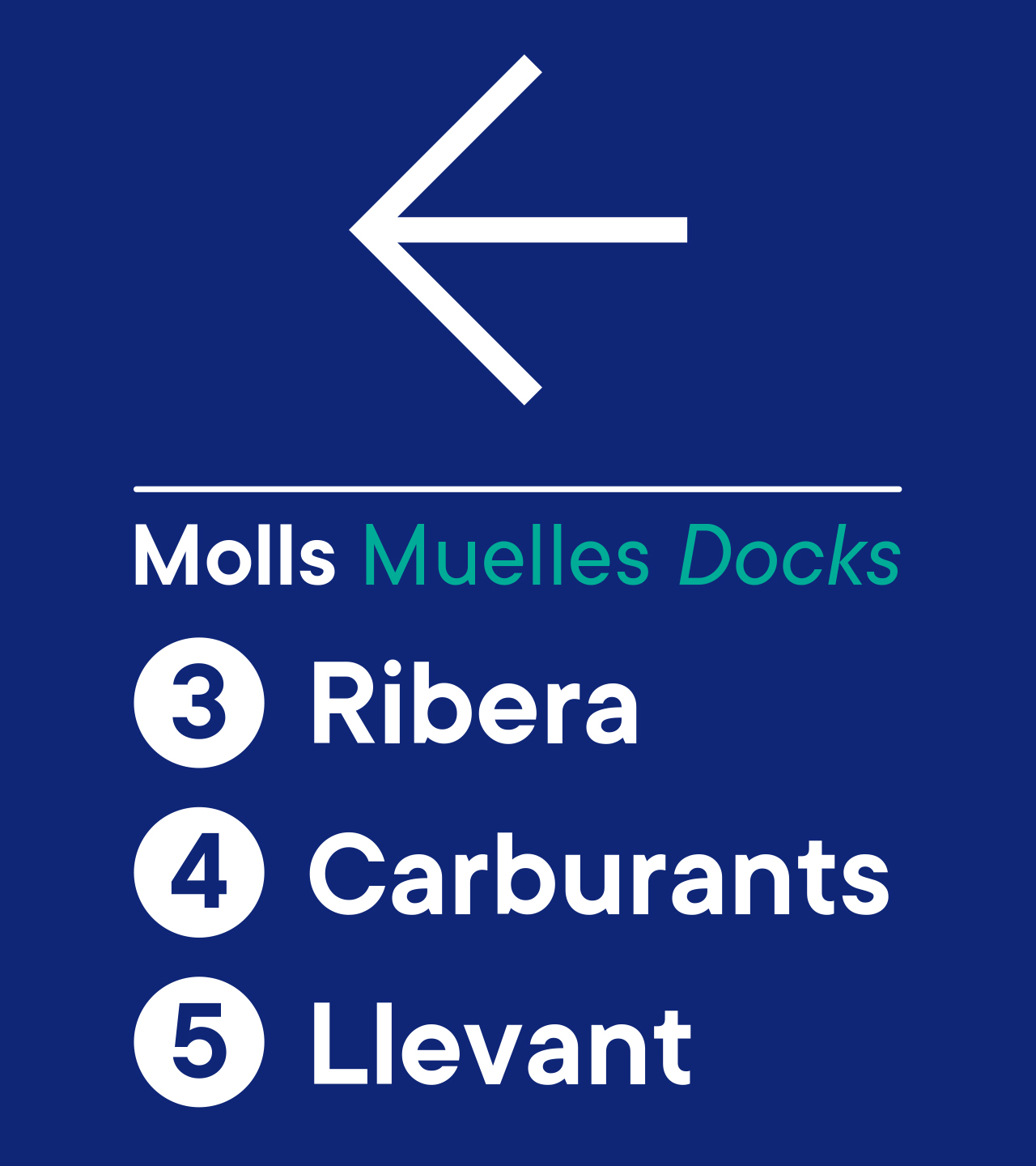 Un uso jerárquico del color que facilita la orientación. Una arquitectura gráfica que permite identificar zonas, muelles, accesos y servicios mediante códigos claros y repetibles. El resultado es un entorno visual ordenado que mejora la navegación física del espacio y aporta profesionalidad y coherencia a toda la experiencia portuaria.