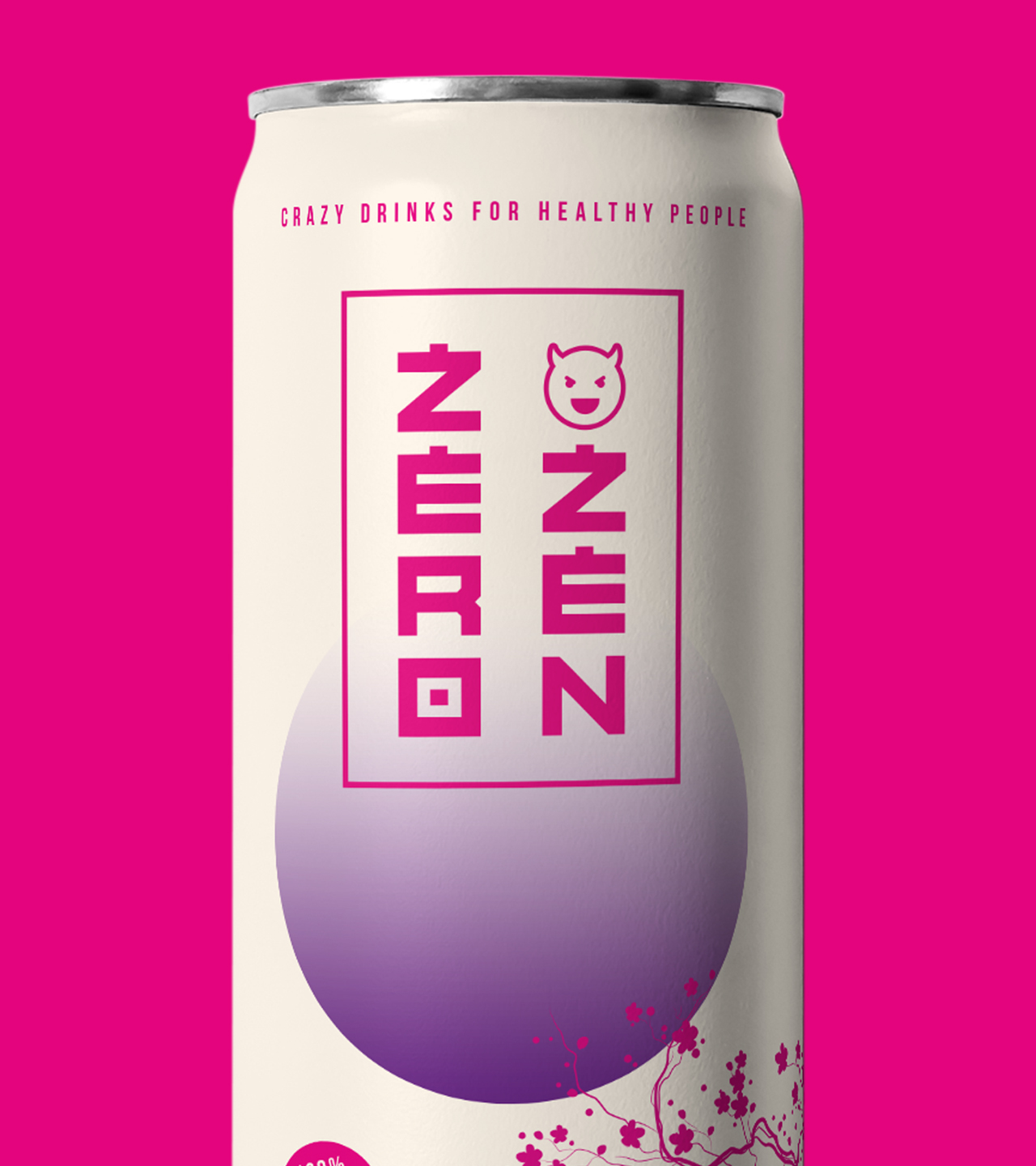 El nombre Zero Zen resume la esencia del proyecto: una bebida que parte de lo natural, ligero y equilibrado (Zen), pero con un punto de rebeldía y diversión que la hace única (Zero rules). Esa dualidad —saludable pero atrevida, fresca pero con carácter— se convirtió en la base sobre la que construimos toda la identidad visual. El logotipo, basado en una tipografía modular contundente, se refuerza con un icono de diablillo sonriente, que simboliza esa personalidad equilibrada y a la vez irreverente. La composición vertical del naming “Zero Zen” se inspira en la grafía oriental y refuerza su impacto en el lineal y aporta un aire distintivo en el sector.